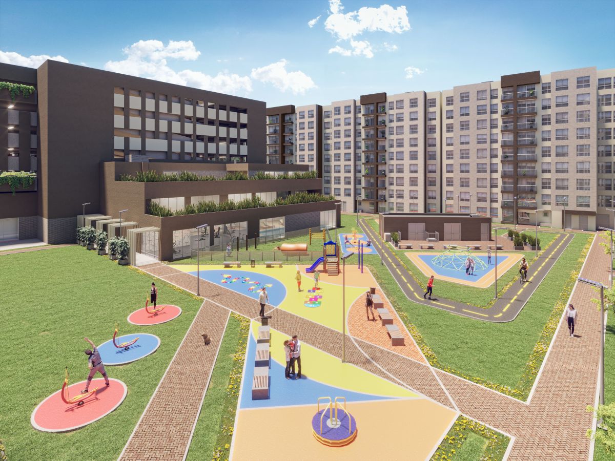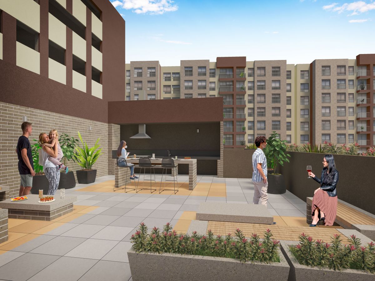 *Las áreas mencionadas son aproximadas y pueden sufrir cambios y/o modificaciones por ajustes técnicos y/o procesos constructivos o modificaciones ordenadas por la curaduría o alcaldía competente en la expedición de la licencia de construcción y demás permisos requeridos. Las imágenes publicadas, planos, renders y demás piezas publicitarias son simples representaciones gráficas de diseño y pueden variar en la percepción y construcción final, por lo que no configura compromiso contractual por parte de la Constructora. El mobiliario, los electrodomésticos, acabados, arborización y demás elementos incluidos en el apartamento modelo y en las imágenes del Proyecto, son únicamente una representación dirigida a ilustrar la utilización de los espacios que puede diferir de los acabados y especificaciones del inmueble. Para mayor información consulté las especificaciones de construcción disponibles en sala de ventas.